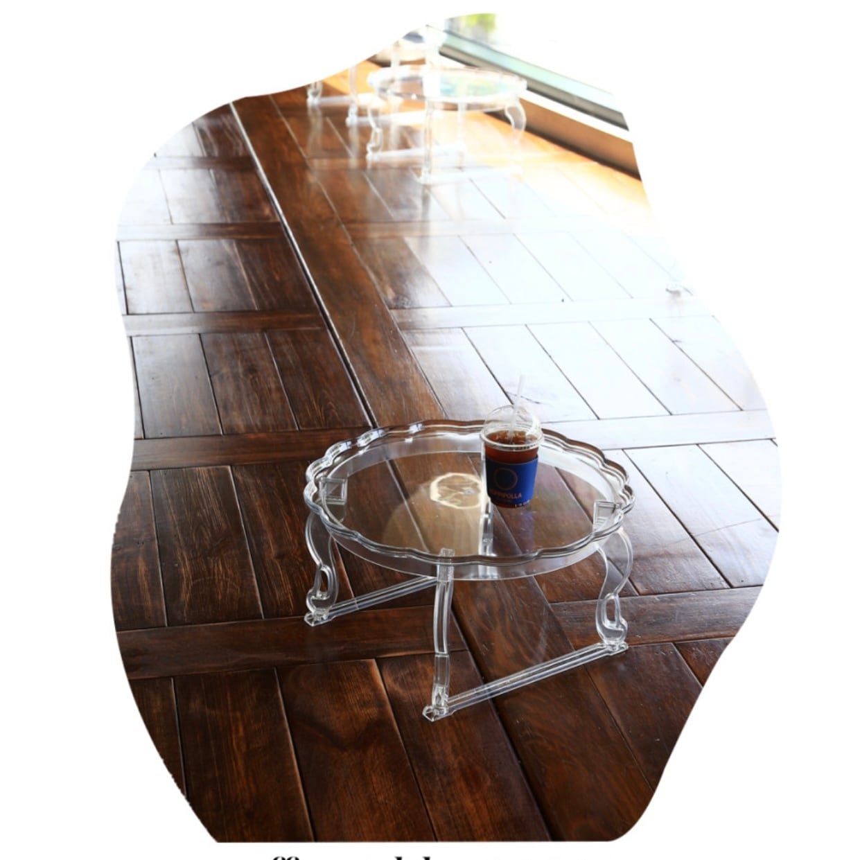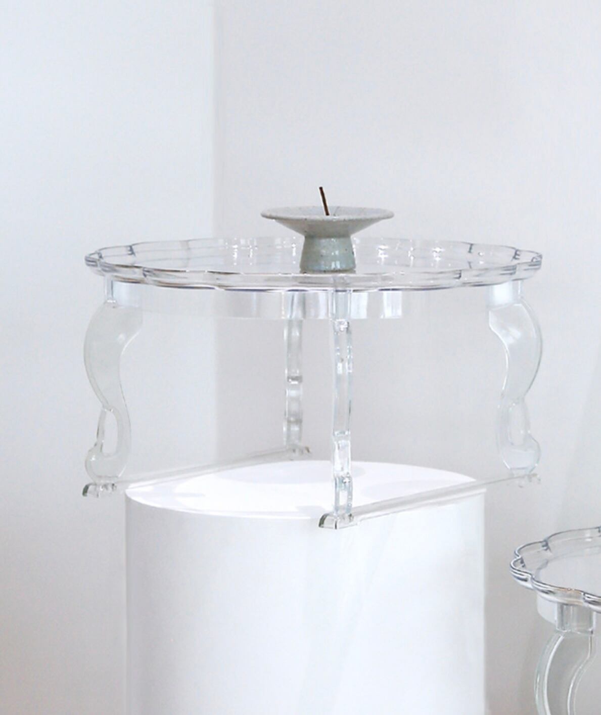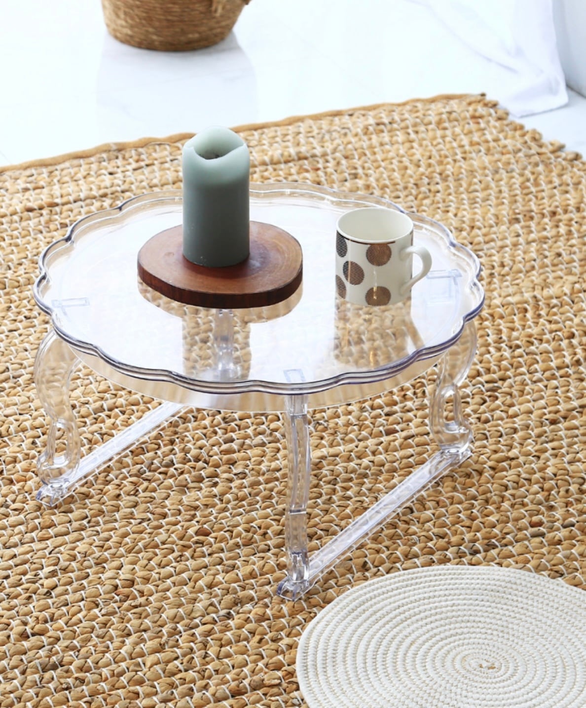 現代のインテリアに似合うクリア素材で製作された 韓国伝統スタイルのティーテーブル 丈夫でお手入れも簡単なので野外での使用にも◎ サイズ:D50*H26cm 素材:PC