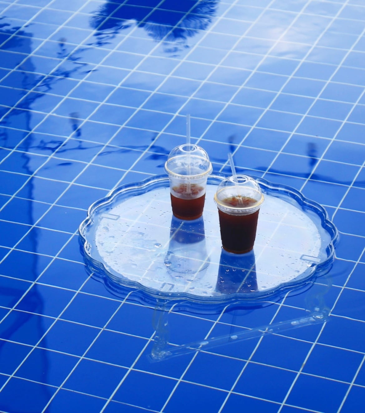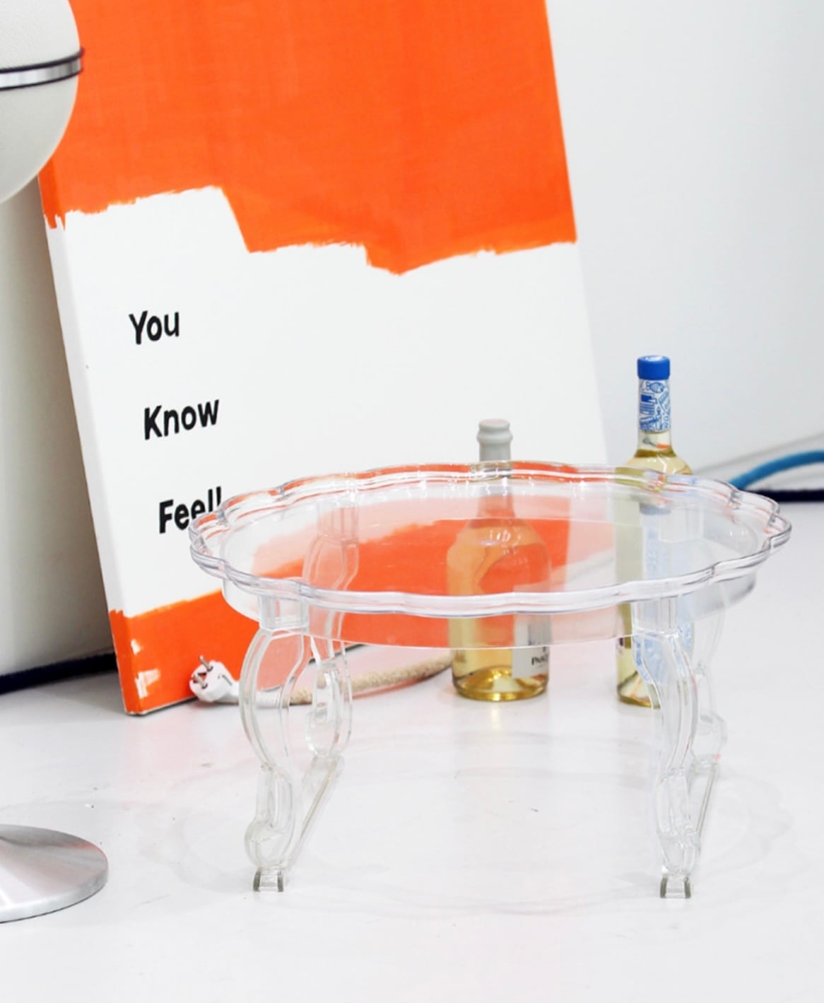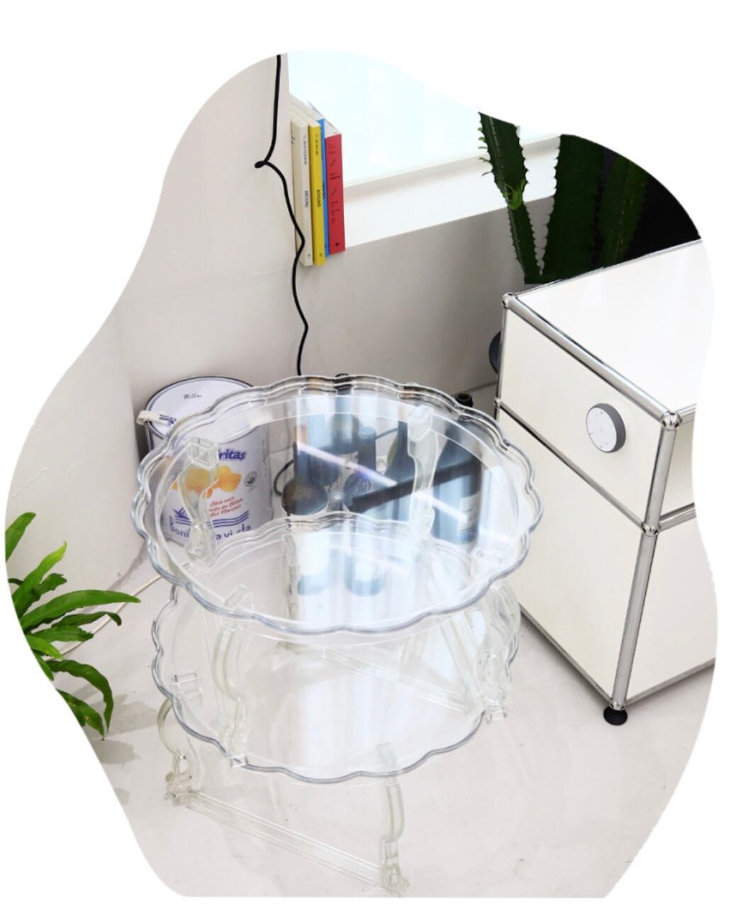 現代のインテリアに似合うクリア素材で製作された 韓国伝統スタイルのティーテーブル 丈夫でお手入れも簡単なので野外での使用にも◎ サイズ:D50*H26cm 素材:PC