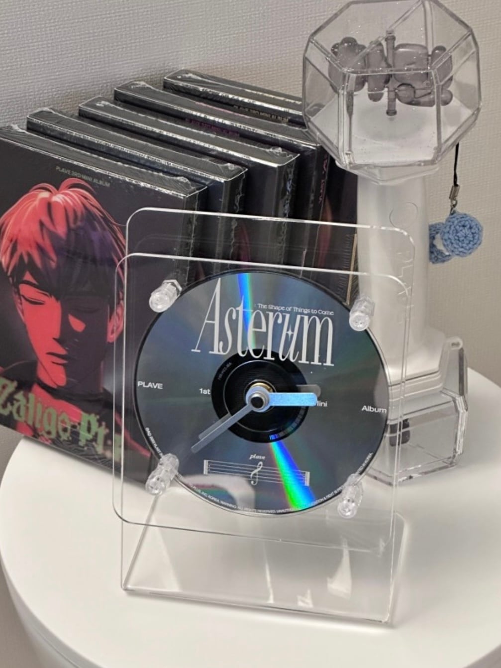 お手持ちの好きなCDやDVDをセッティングして おしゃれにディスプレイ可能なクリア卓上時計 無音ムーヴメント made in korea 本製品に写真のCDは含まれません。