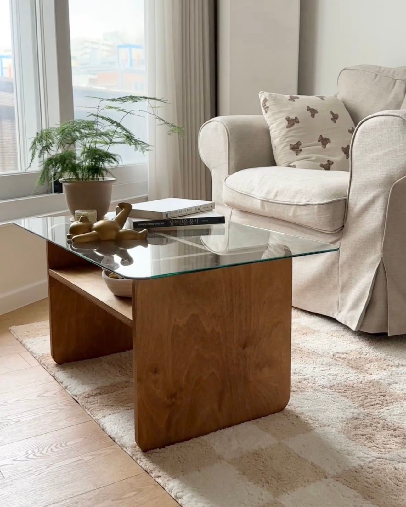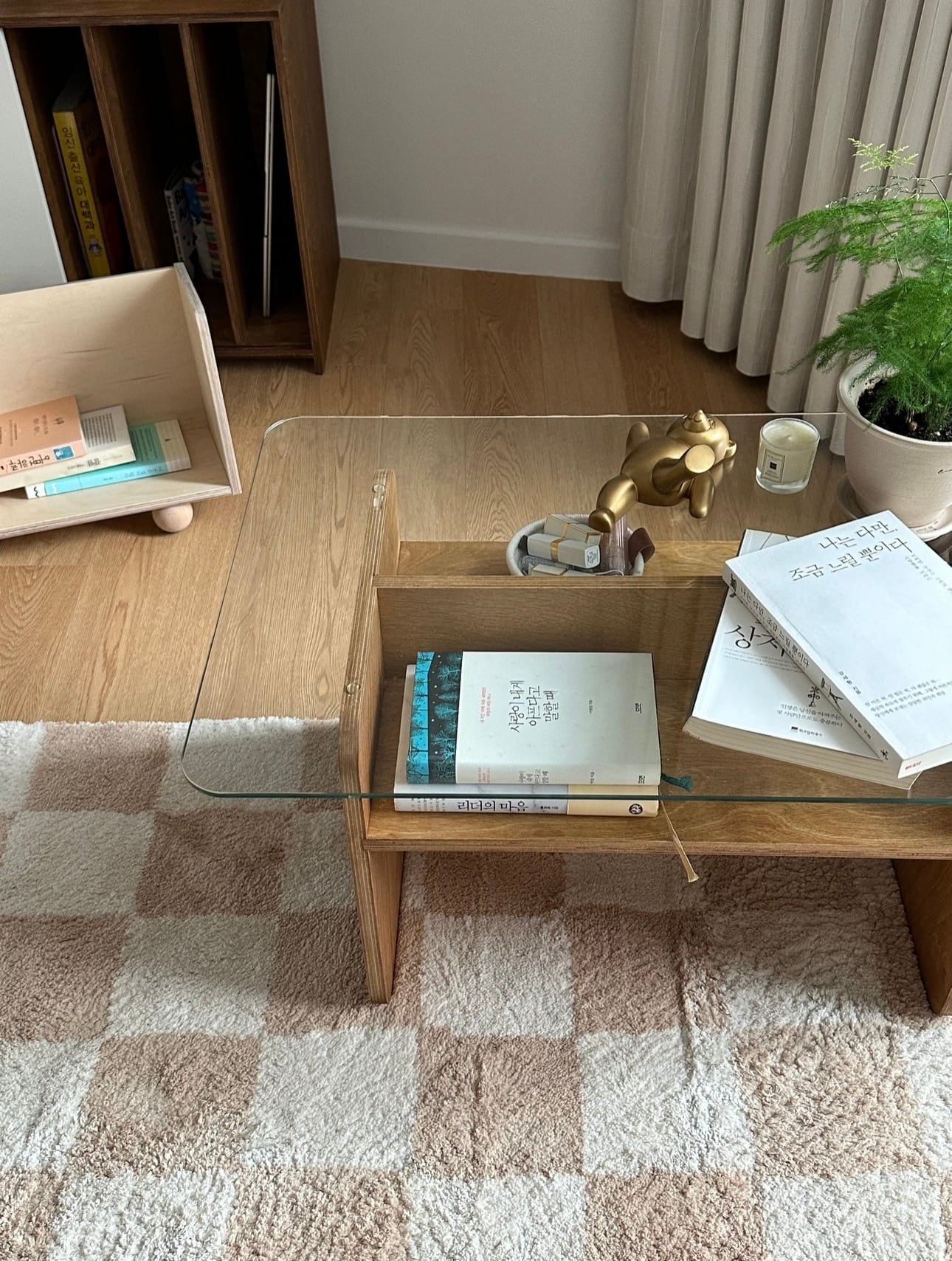 サイズ:top (glass) W700*450 body (wood) W500*D350*H350 素材:ウッド、強化ガラス made in korea
