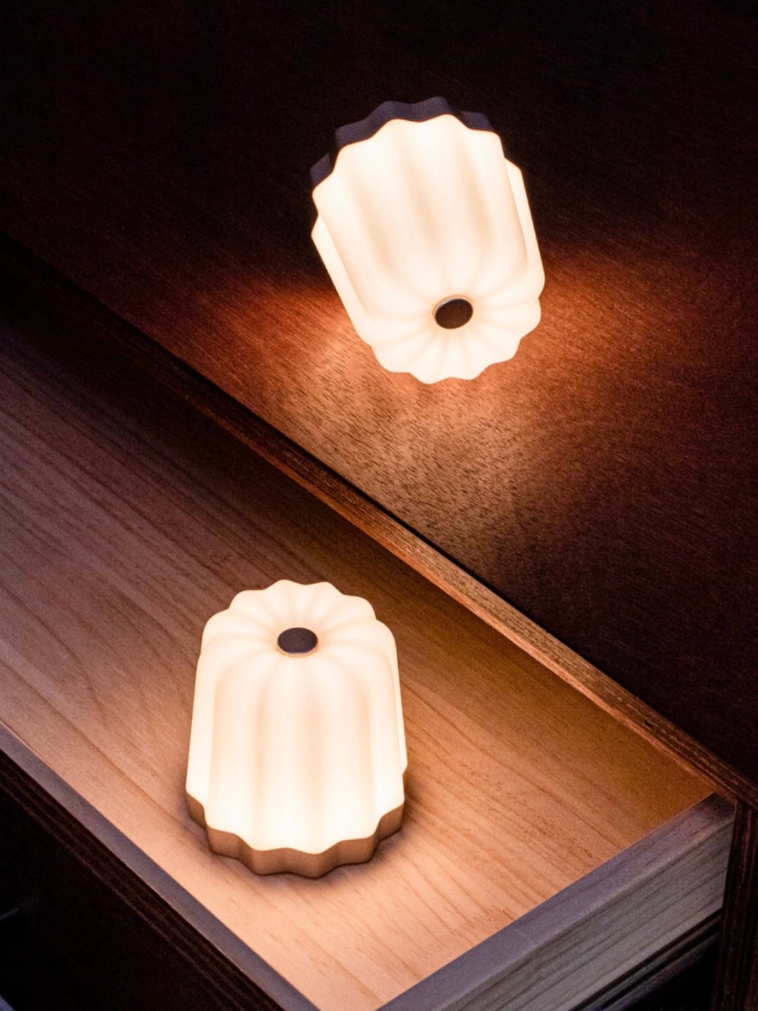 3色の照明モード(ナチュラル、ウォーム、デイライト) 明るさ3段階調節機能付きユニークでおしゃれなカヌレムードライト サイズ:詳細は写真をご参照ください。 素材:PC/ABS 重量:100g 電源:USB TYPE Cコード 連続最大15時間使用可能
