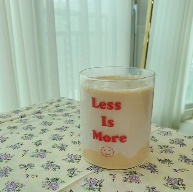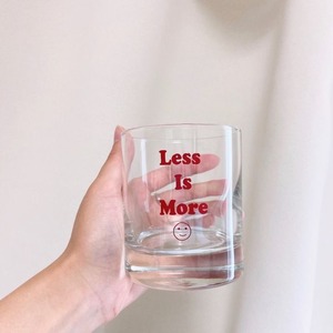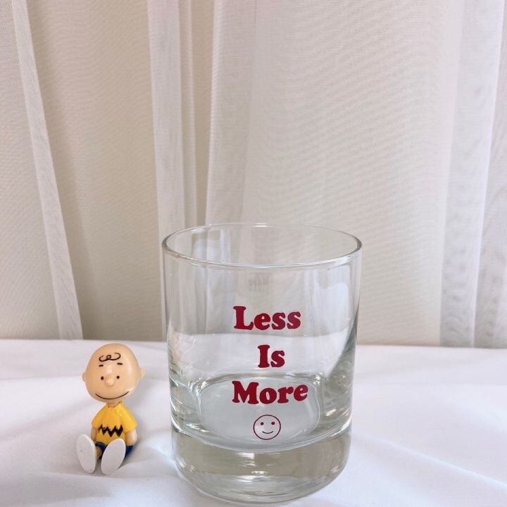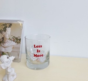 韓国発大人気インテリア雑貨 less is more glass cup おしゃれな英文と可愛いスマイルが描かれているガラスコップ レトロな雰囲気でホームカフェにおすすめです◎ カップ、グラス