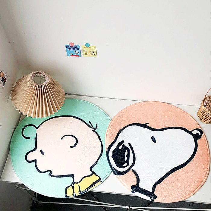 レトロなタッチが可愛い♡ スヌーピーとチャーリーブラウンの円形ラグ フットマット キッチンマット サイズ:直径50cm 裏面滑り止め防止付き