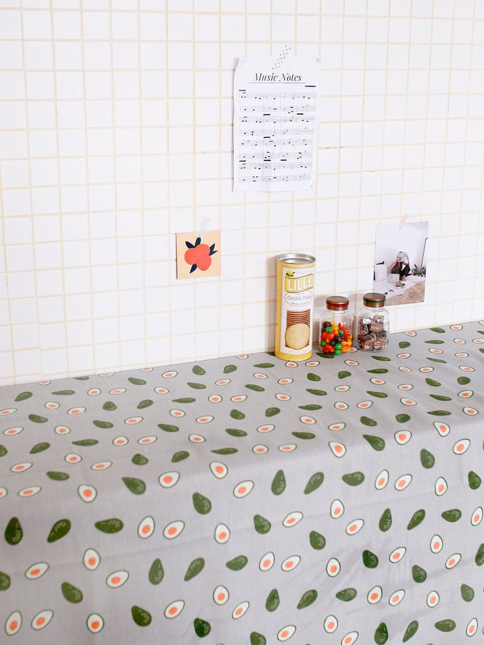 韓国発大人気インテリア雑貨 アボカドテーブルクロス ユニークでヴィンテージレトロな雰囲気 アボカド好きな方に是非おすすめしたいポップなテーブルクロス♡ ピクニックシートやカーテン、ソファーカバーとしても使用可能◎ サイズ:M 100*150 L 150*150cm 素材:リネン