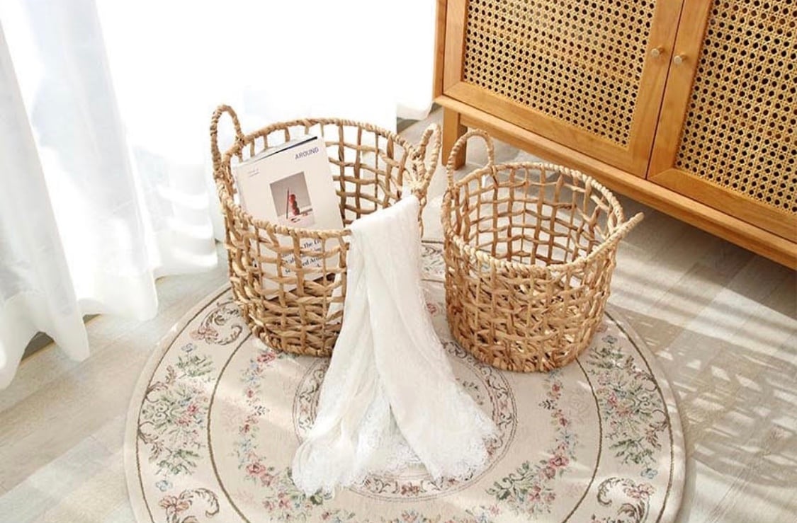 リビング、お部屋の収納、整理整頓に ラタン製 マルチバスケット 洗濯バスケット、植物、植木鉢ケースとしてや 雑貨、おもちゃなどの収納に便利なアイテムです* Mサイズ+Lサイズの2点セット サイズ:Mサイズ 30*25cm Lサイズ 35*28.5cm 素材:天然ラタン