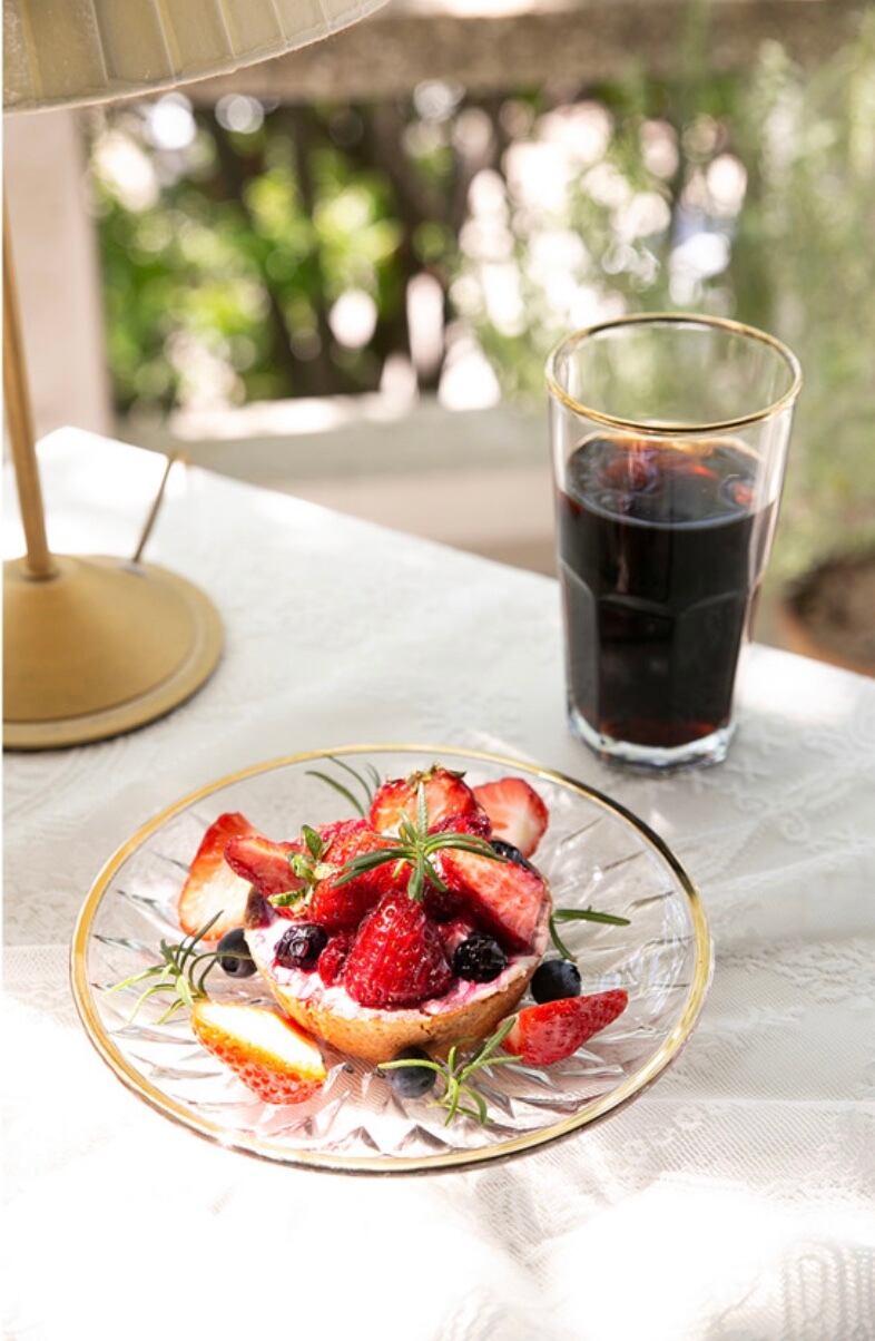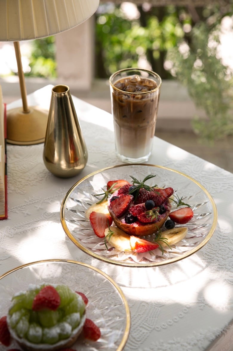 ヴィンテージアンティークムード おうちカフェ、ホームカフェに♡ ダイアモンドパターンの透明プレートの縁に ゴールドのラインが施された高級感のあるプレート サイズ:Sサイズ 直径15cm Mサイズ 直径19cm 素材:ガラス