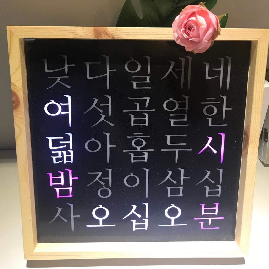 ハングル25文字を利用し5分単位二時間を表示するインテリア時計