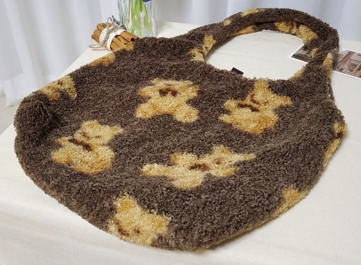 SNS、インスタで大人気のデザイン♡ もこもこテディーベアトートバッグ カラー:アイボリー、ブラック、ブラウン サイズ:37*45cm 内ポケット付き