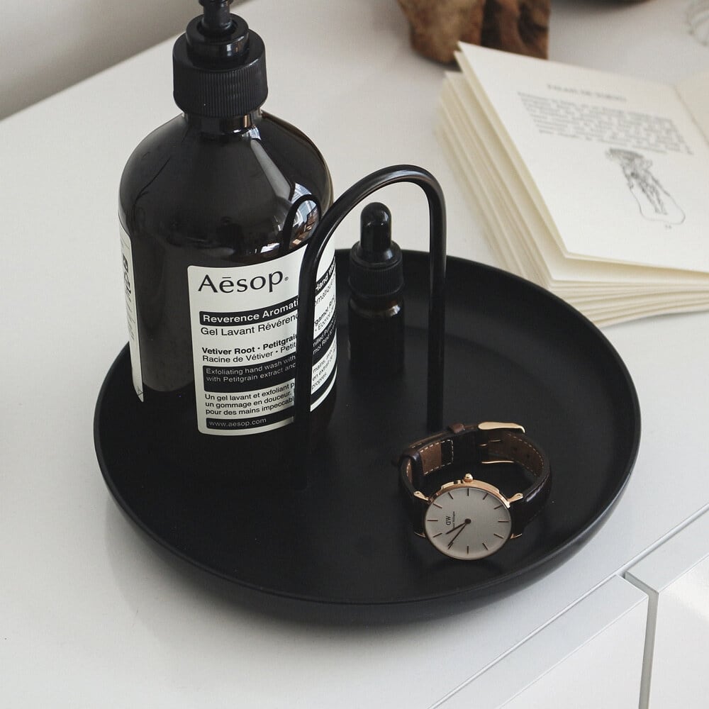 シンプルながらも洗練されたモダンなデザインのハンドルトレー シックなモノトーンインテリアにおすすめです◎ カラー:グレー、ブラック、バーガンディ(NEW) サイズ:D20*H13