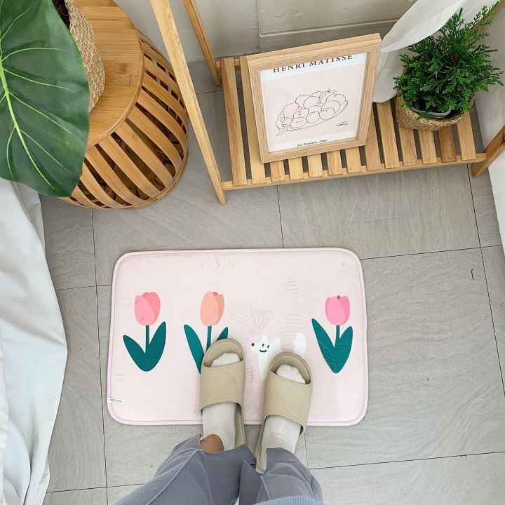 お部屋をポップに仕上げてくれる 可愛いキャラクターフットマット♡ *裏面ノンスリップ加工 カラー:ピンク、ブルー、チューリップブルー、ホワイト サイズ:60*40cm