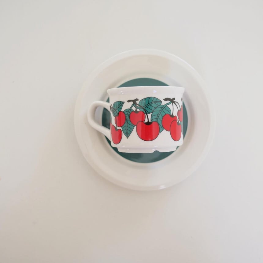ヴィンテージアンティーク調♡ レトロなチェリーデザイン カップ ソーサーセット サイズ:ソーサー 15cm カップ D7.5*H6 容量:180ml 素材:セラミック