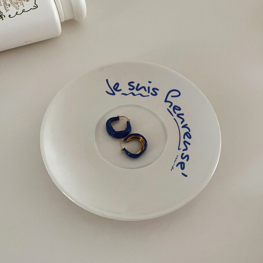 おうちカフェにぴったり♡ Je suis heureuseティーカップ+ソーサーセット カラー:ブルー、レッド サイズ:ティーカップ D9.5*H6.5cm ソーサー 15cm 容量:250ml 素材:セラミック made in korea