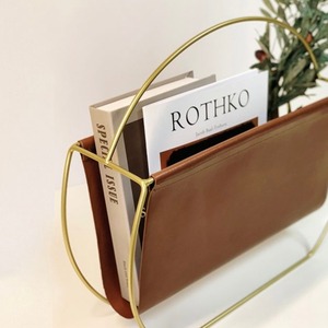 ヴィンテージレトロな北欧スタイル♡ ゴールドフレームレザーマガジンラック サイズ:46*40*13cm 素材:合皮