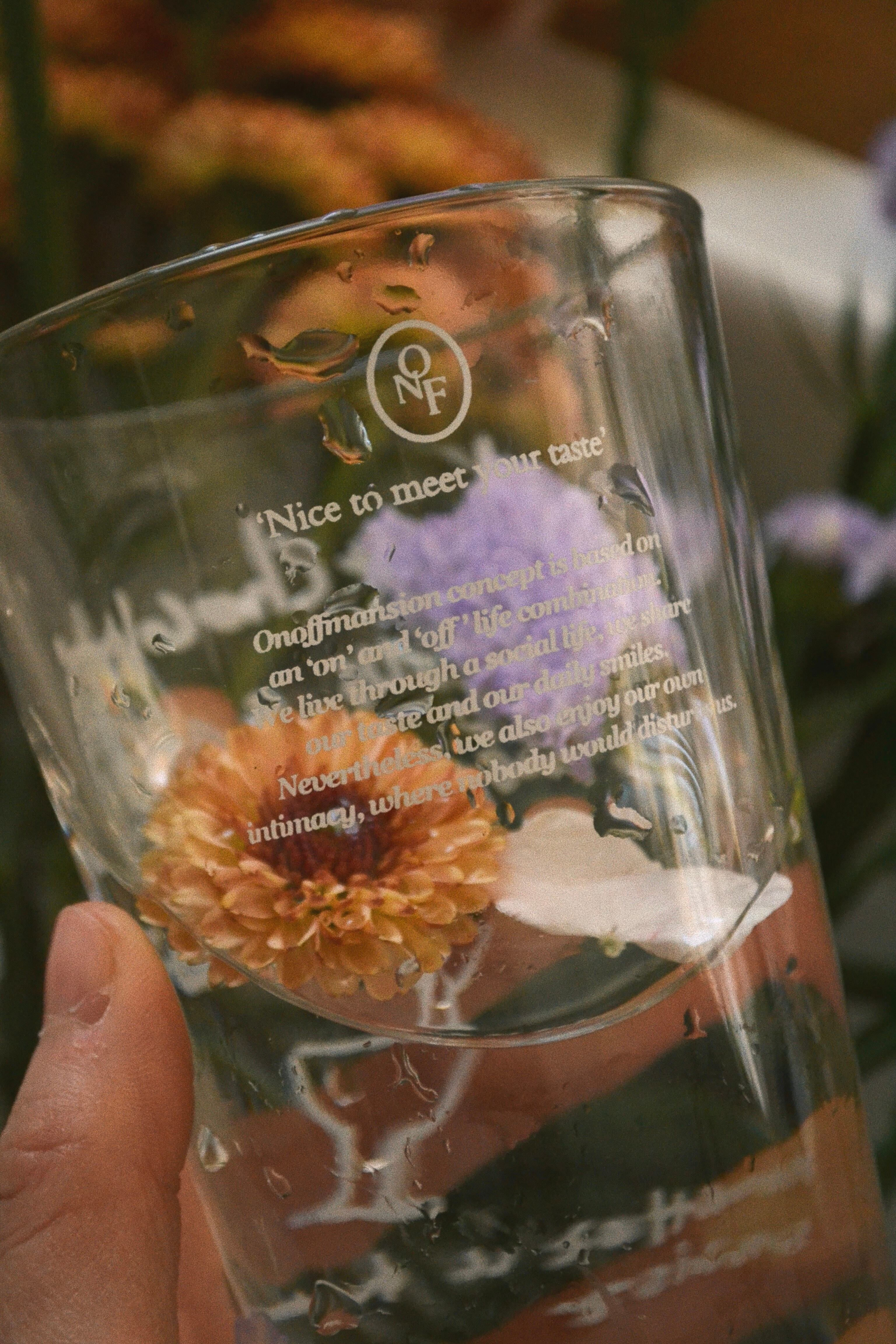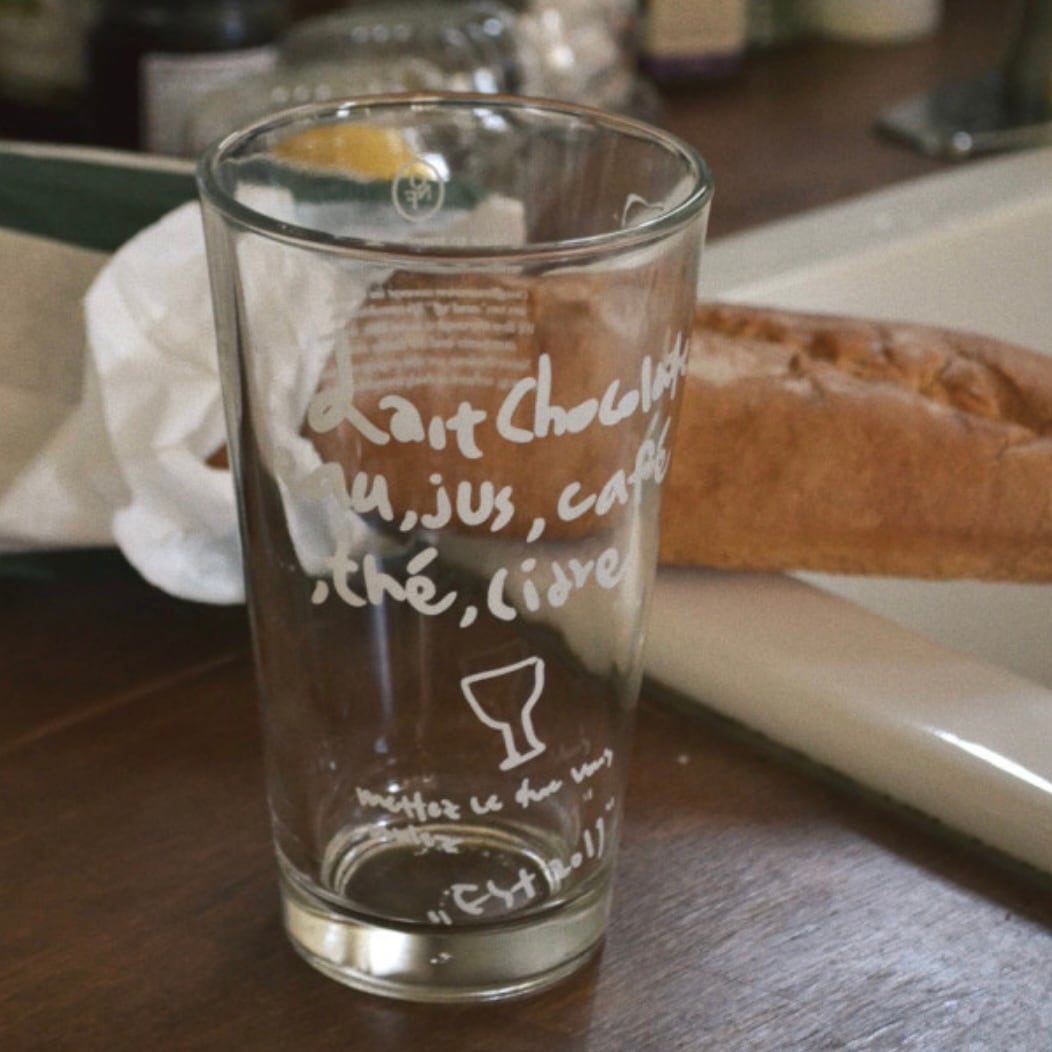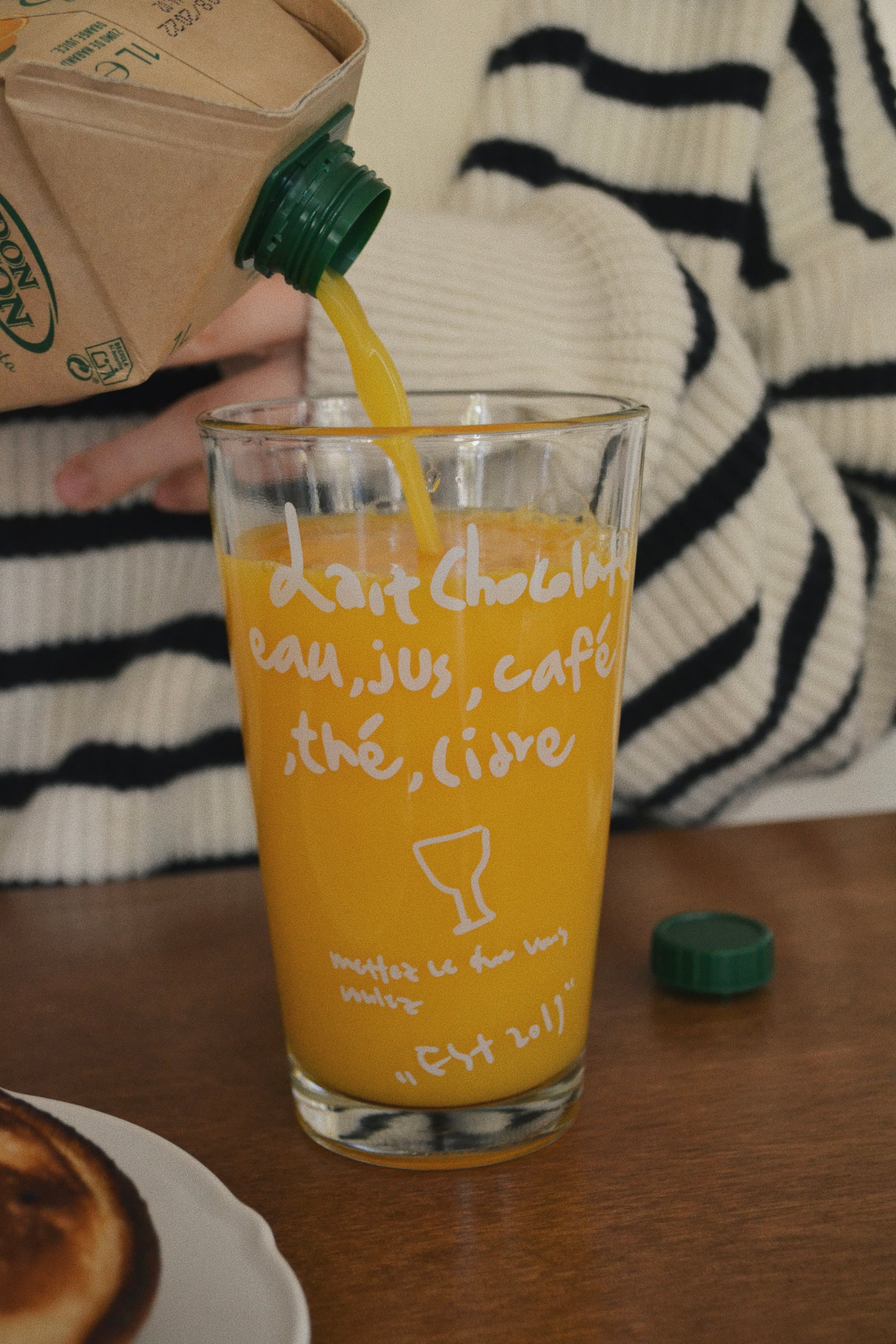 'put whatever you want' ハンドライティングとドローイングがおしゃれ 大きめサイズで使い勝手も◎なデイリーロングコップ サイズ:D9*H15cm 容量:450ml 素材:glass