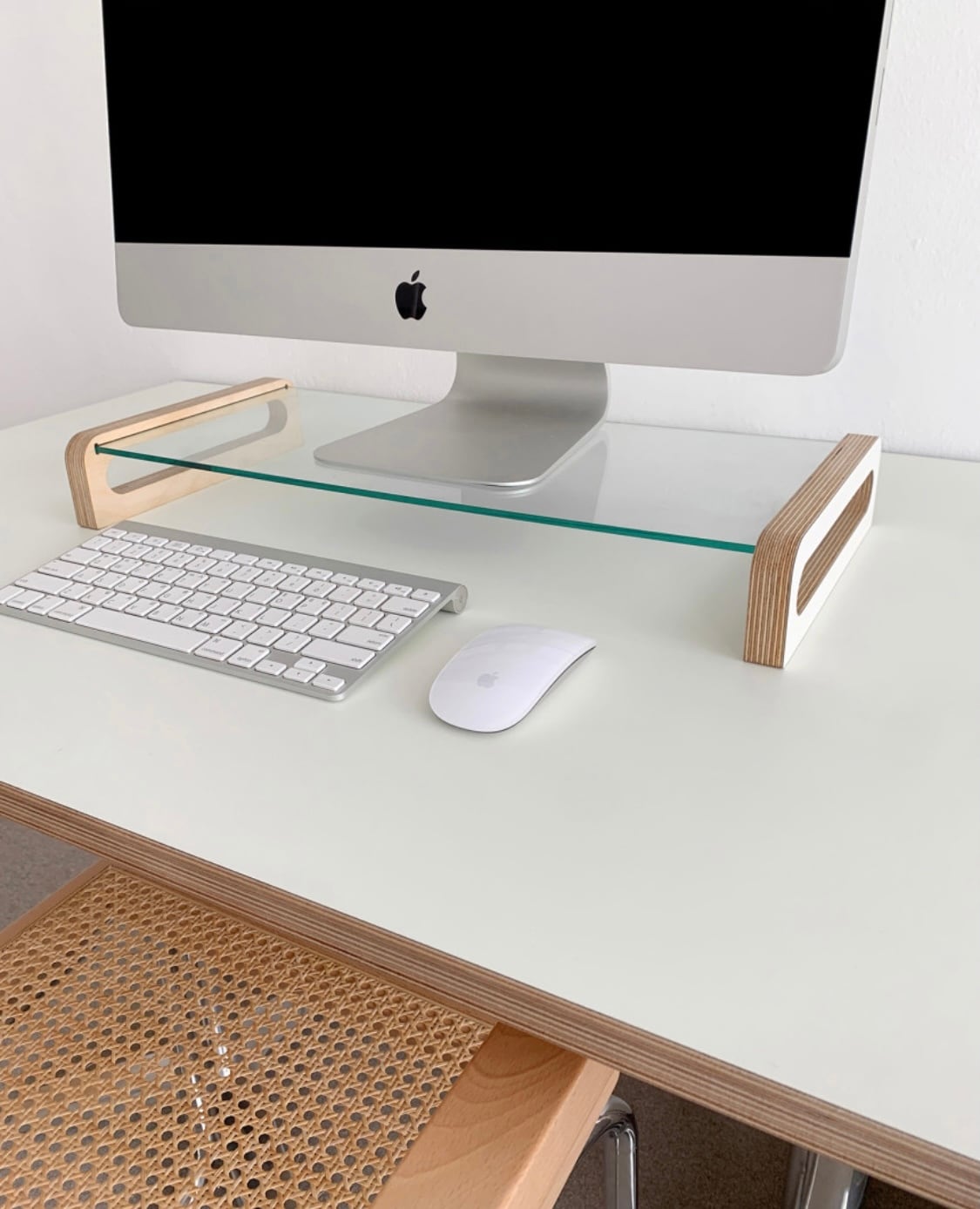 ナチュラルなウッドとガラスの組み合わせが高級感◎ クリア素材でデスクを広く見せる効果あり♪ サイズ:詳細は写真をご参照ください 素材:ウッド、強化ガラス